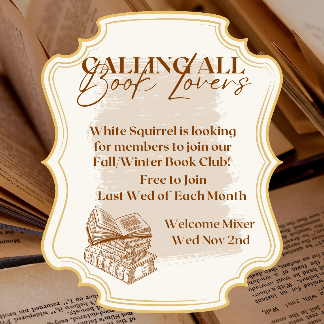 Join us for a Kick-off Mixer on November 2nd to discuss what book we will read for November!