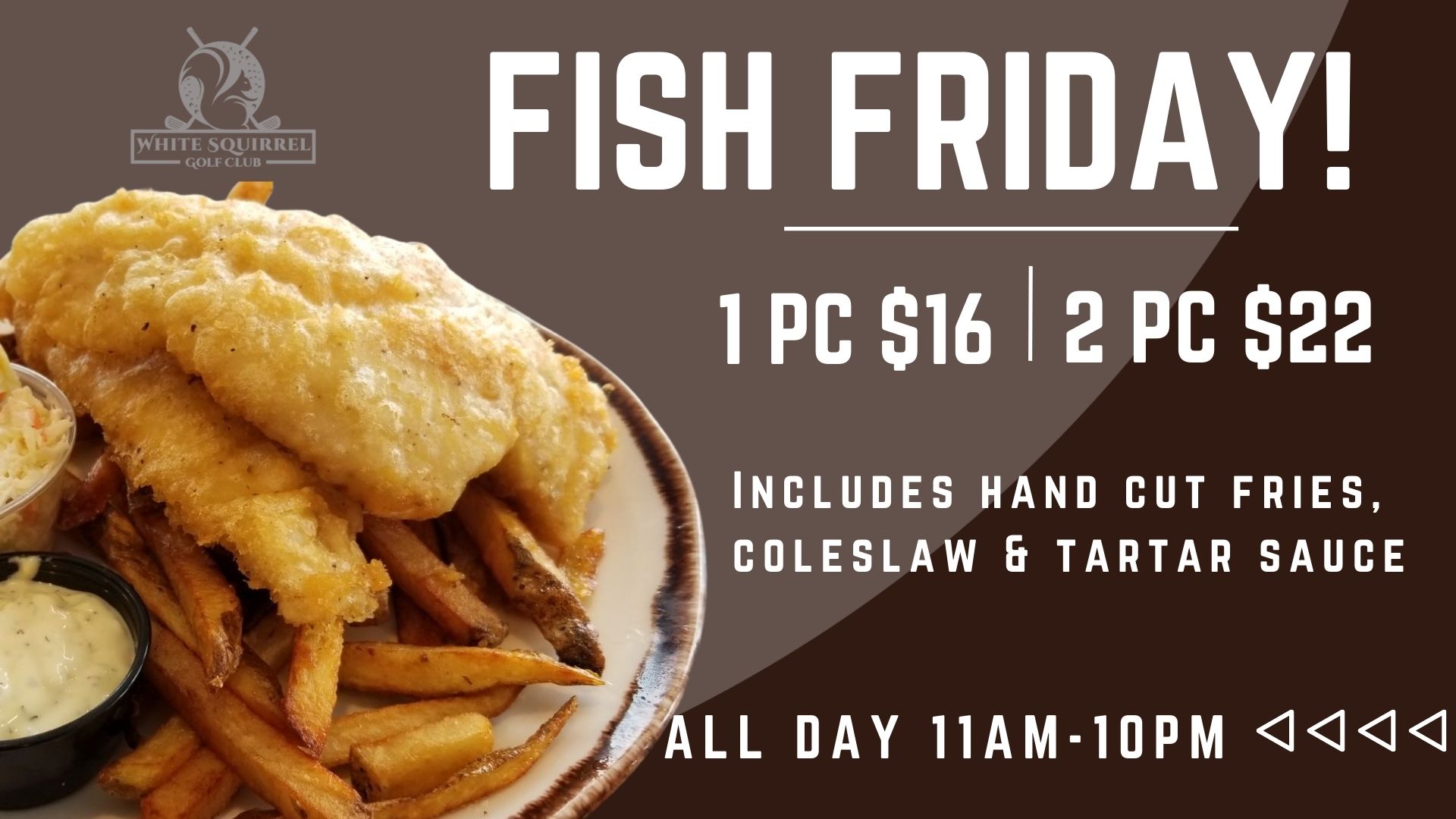Join us every Friday all day long 11:00am to 9:00pm for our Haddock Fish & Chip Special. 1pc/ $16.00 2pc/$22.00 with handcut fries, coleslaw & tartar.