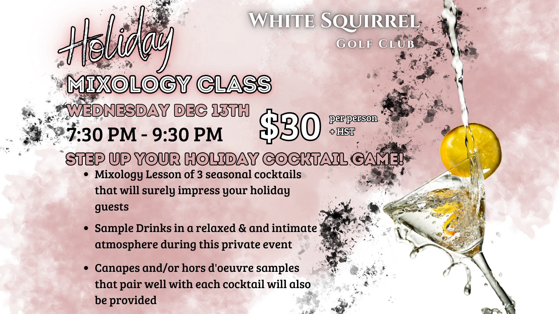 Join us for a fun-filled evening of Mixology at White Squirrel Golf Club